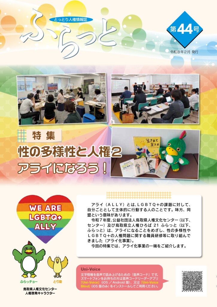 このたび、「とっとり人権情報誌 ふらっと第44号」(県からの受託事業)を発行しました。