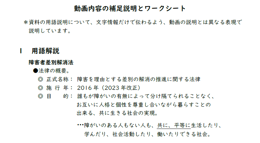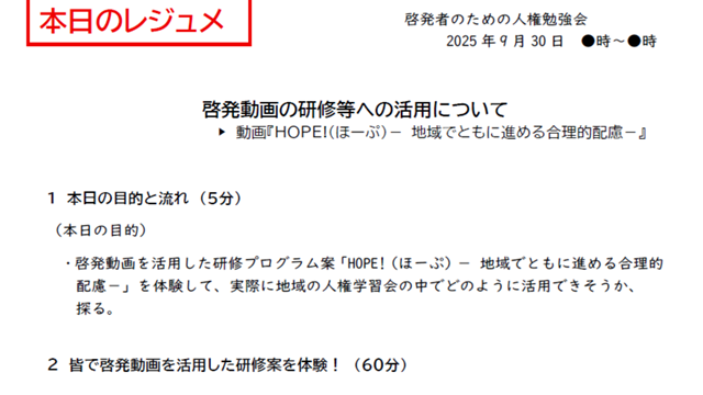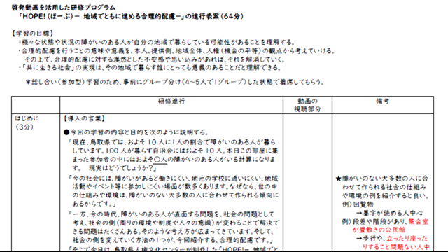 学習テーマ:啓発動画の研修等への活用(対象動画:HOPE!- 地域でともに進める合理的配慮-)