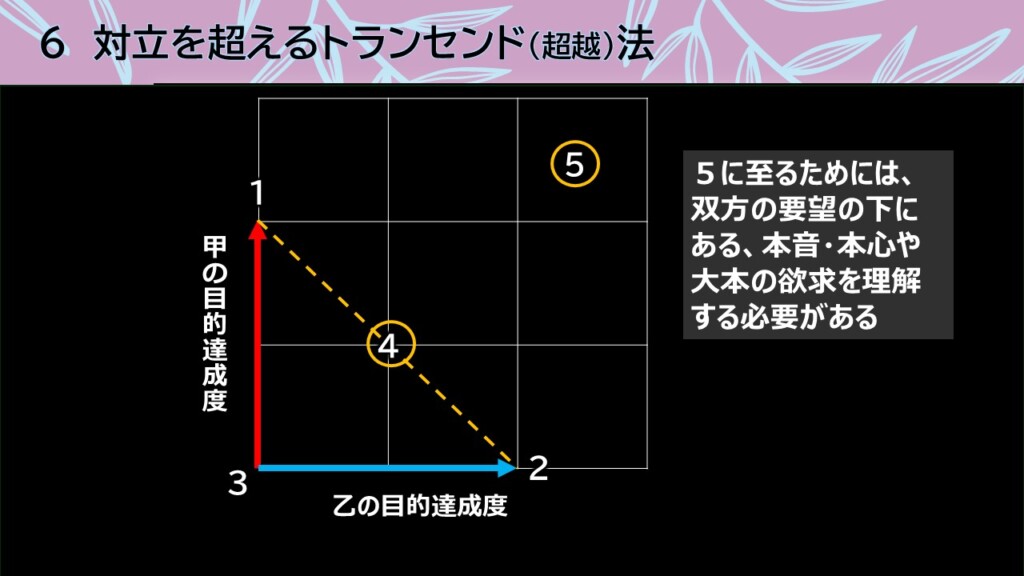 自分の感情や要望などを率直に伝え、相手の思いもしっかりと受け止めること、自分の憶測や評価ではなく、客観的事実を元にして話し合うことなど、アサーティブ・コミュニケーションの基本についてお話ししました。また、両者の意見対立を扱うときに役立つことを願って、トランセンド(超越)法についてもご紹介しました。